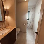 Zur Ausstattung des Badezimmers gehören auch eine begehbare Dusche.